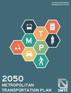 The MTP serves as a blueprint that guides the Syracuse Metropolitan Area’s transportation development over a period of at least 20 years. Updated every five years to reflect changing conditions and planning principles, the plan is based on projections of growth and travel demand coupled with financial assumptions. The MTP considers major urban transportation planning concerns such as complete access to transportation, alternative transportation modes (especially bicycle and pedestrian), the impact of land development on the transportation system, highway traffic congestion, and maintenance of the existing infrastructure. Central to the MTP is the protection of the value of investments already made in the transportation system, while providing resources to pursue innovative solutions to mobility constraints. The MTP also supports enhancing travel choices and anticipates major projects that will be needed over the next 20+ years.