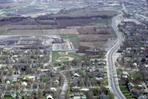 Looking east. Far left: GM Circle. Right: Court Street Rd. Lyncourt.